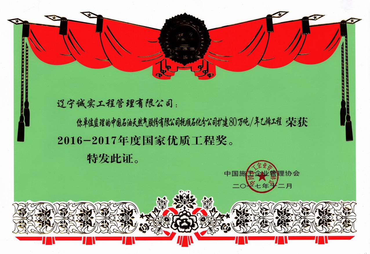 2016-2017年國家優質工程獎(撫順石化擴建)