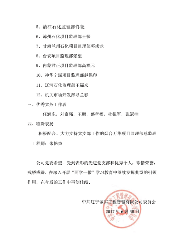 遼寧誠實工程管理有限公司黨委召開《慶祝建黨96周年暨“一優(yōu)兩先”表彰視頻大會》