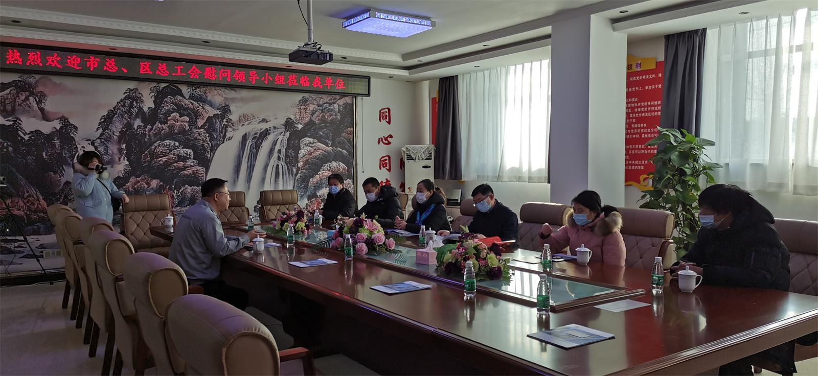 張主席聽完匯報后,首先肯定了我企業工會的日常工作,以及疫情爆發之初,我企業向社會作出的突出貢獻,并向我企業工會撥入送溫暖資金5萬元。最后,張主席還意味深長地說:感謝我企業在本行業的堅守,在本市的堅守。馬書記還在春節即將來臨之際,為企業贈送了春節對聯。