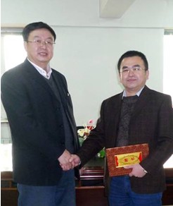總經(jīng)理孫學(xué)良(左一)與張國富教授(左二)、